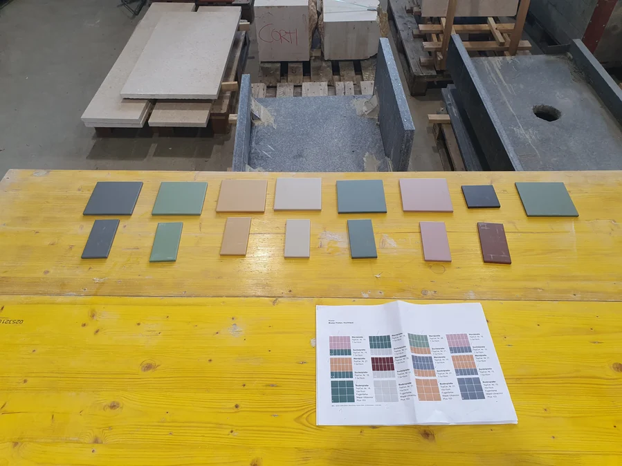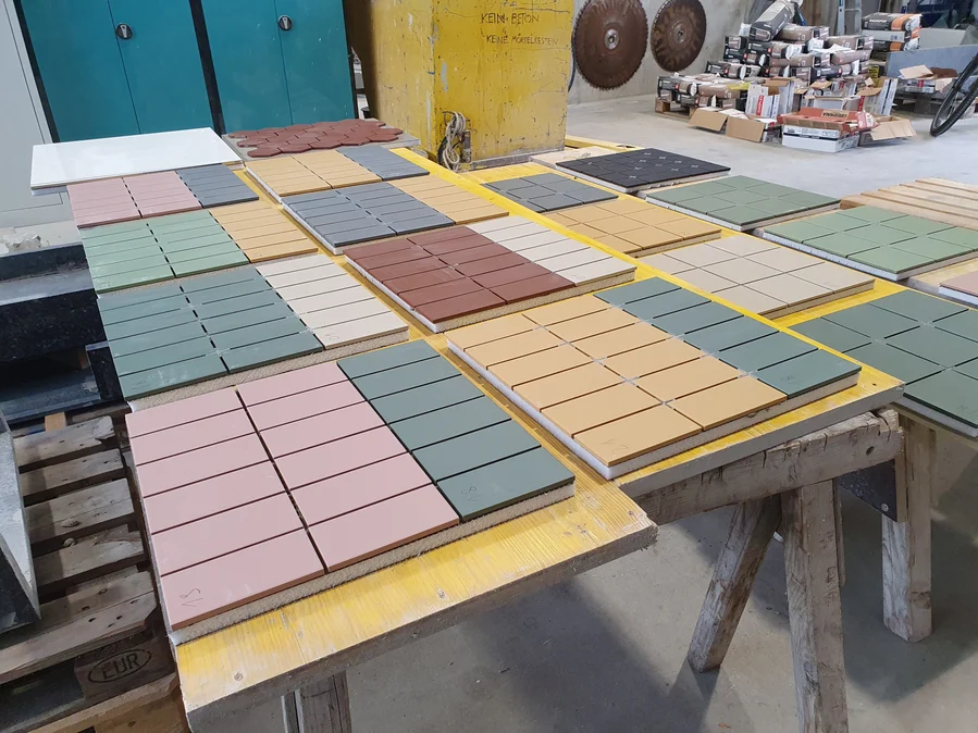 Die Corti Plattenleger freuen sich auf den Ausbau und die Plattenarbeiten am Tramdepot Zürich, die im August 2024 beginnen werden, und haben bereits die Musterplattenserie fertiggestellt.