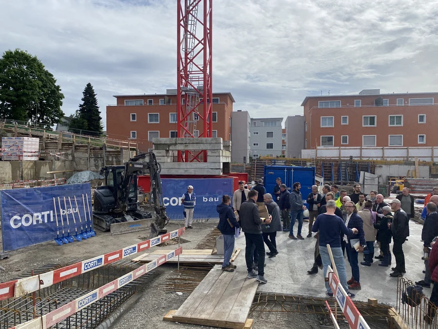 Anwesende: Bauherrschaft, Planungsteam, Behördenvertreter und Unternehmer. Seitens CORTI AG: Philippe Corti, Ervin Lombriser, Thomas Wyder und Fabio Tani.