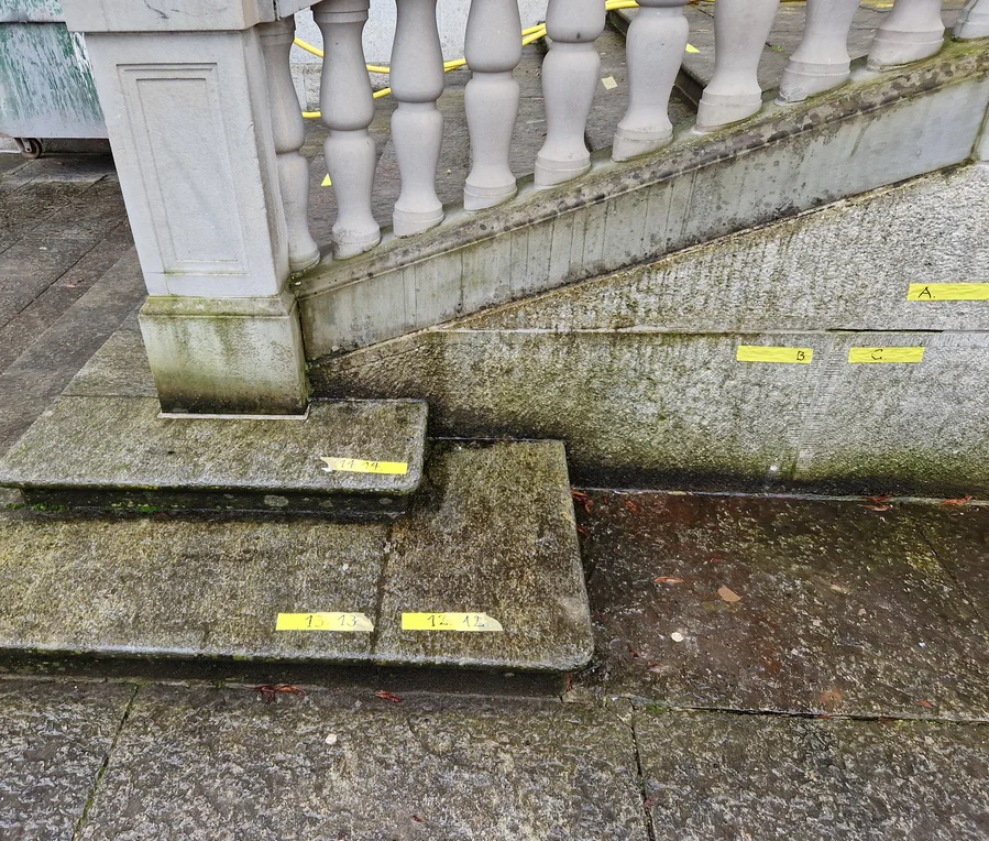 Rückbau denkmalgeschützter Aussenbereiche; Treppe zum Stadtgarten mit Balustrade, Treppe zur Stadthausstrasse. Das Material wird bauseits eingelagert.