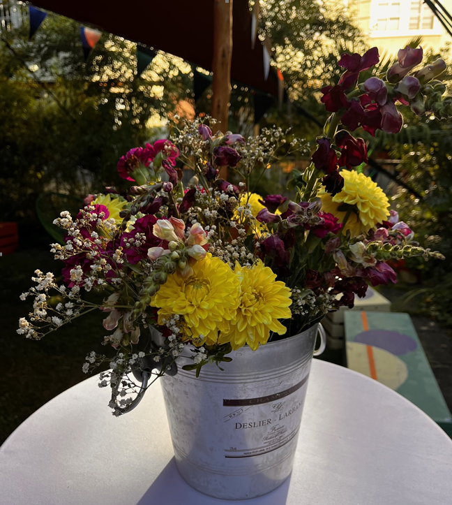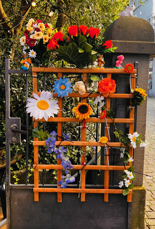 Freitagabend: Das Tor zum Pfarrgarten ist geschmückt und für uns geöffnet.