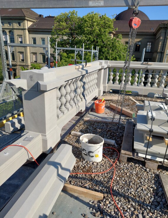 - Vollständiger Ersatz der Kunststeine in Naturstein (Fenstergewände)