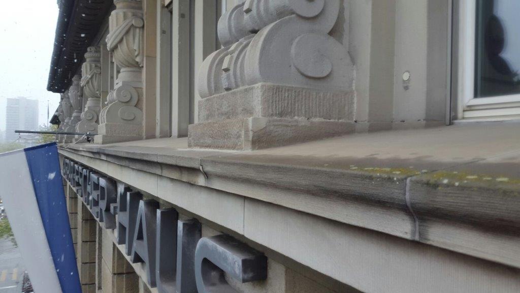 Um die Kunssteinelemente zu erhalten, ist schnellst möglich eine umfassende Sanierung notwendig.