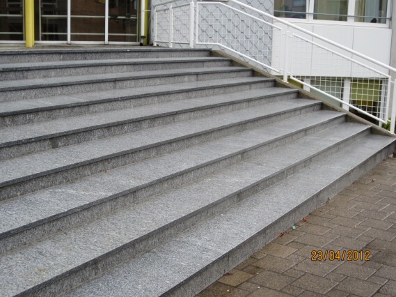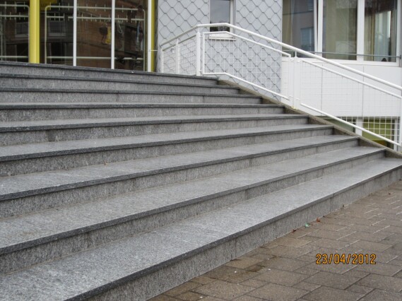 - Ersetzen der defekten Trittplatten durch neue Iragna-Natursteinplatten