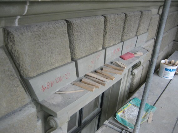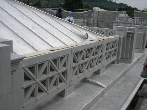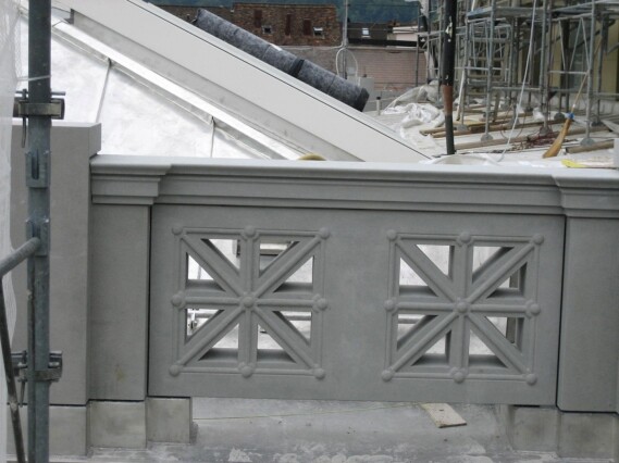 - Liefern und versetzen der Balustraden mit reich profiliertem Masswerk in Bollinger Sandstein