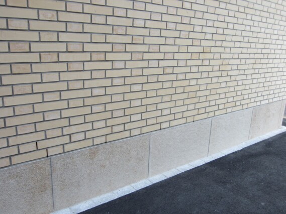 Neuer Fassadensockel aus bossiertem Kalkstein