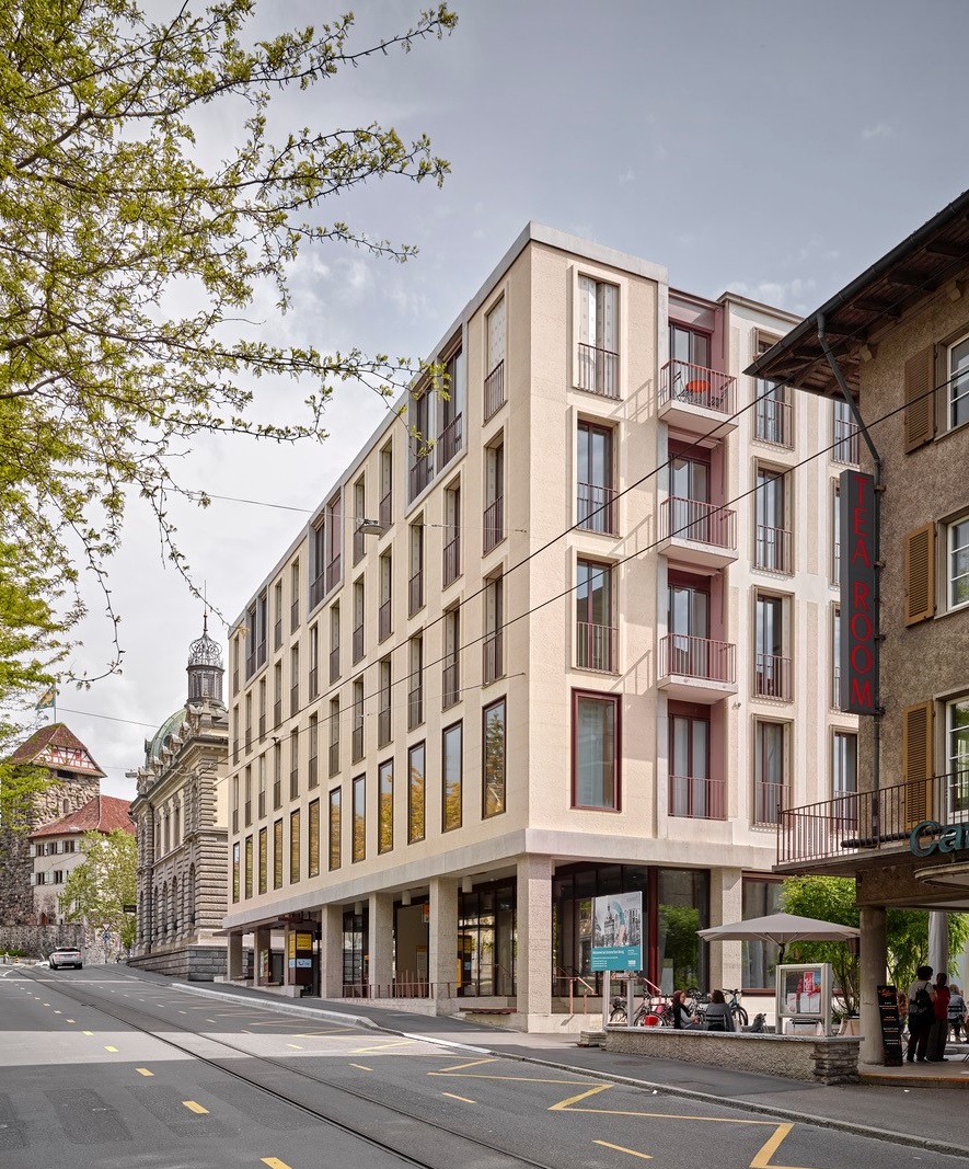 Sanierung des denkmalgeschützten Gebäudes mit Um- und Neubau an der Rheinstrasse 5 in Frauenfeld.