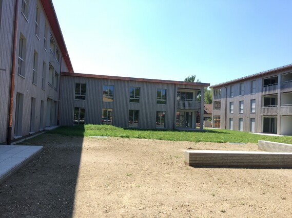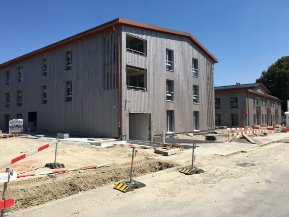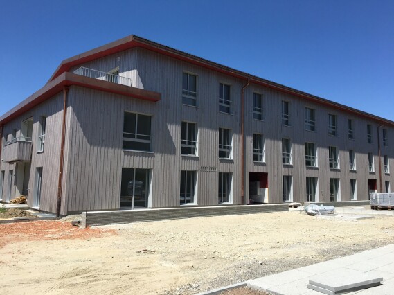 - Beton/Holz-Hybridbau (Holzfassade wurde durch Drittunternehmen erstellt)